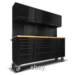 Introducing our deluxe professional steel tool chest, a substantial 72-inch unit designed for versatile use in homes, workshops, automotive settings, and trade applications. Effortlessly maneuver this chest around your workspace with its four large lockable polypropylene wheels.