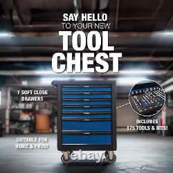 Introducing the Hyundai 175 Piece, 7 Drawer, Castor Wheel Mounted Roller Tool Chest Cabinet - an exceptional tool storage solution designed for both home and professional mechanics. The HYTC9006 is a 7-drawer caster-mounted tool chest from Hyundai, featuring super smooth ball-bearing mechanisms for effortless drawer opening and liners in each drawer to prevent tool slippage. Ideal for daily use in garages, automotive, and home workshops.