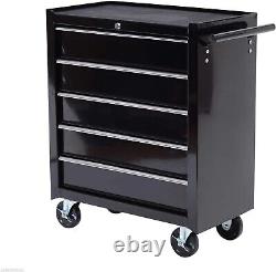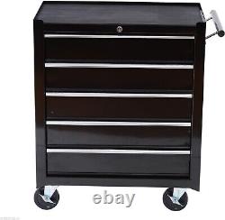 Rolling Tool Chest 5 Drawers Cabinet. Five drawers: Medium-sized to provide plenty of room for storing and organising tools, equipment and other hardware. Top EVA mat to hold tools on top - can be grabbed easily. Four wheels: Allows cabinet to be moved around easily, with a side handle to push and pull. Two wheels can be locked to keep unit safely in place.