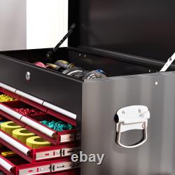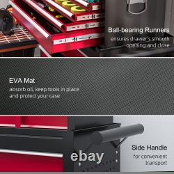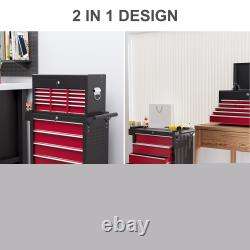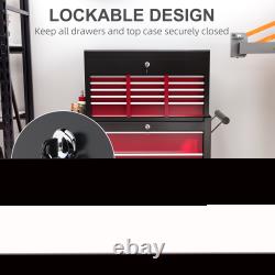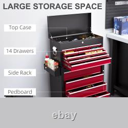 Rolling Tool Cabinet w/14 Drawers Lockable Tool Chest&Roller Cabinet Combo. Discover the convenience of organising your tools with the HOMCOM tool chest with wheels. This roll cab features 14 drawers equipped with ball bearing runners for smooth operation, topped with a top case. Each storage space is equipped with EVA mats, providing effective protection for your tools as well as preventing scratches on the tool storage cabinet itself. The powder-coated steel frame offers a sleek look to this essential large tool chest, complete with wheels for easy mobility.