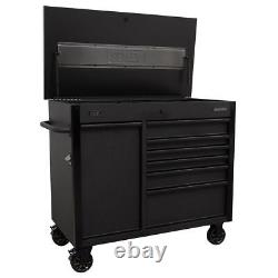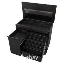 Drill Bits Auger Bits & Sets. Sealey Mobile Tool Cabinet 1120mm with Power Tool Charging Drawer AP4206BE. All heavy-duty steel construction and manufactured with steel inner walls for extra strength and durability. Heavy-duty 45mm ball-bearing drawer slides provide superior performance, suitable for heavier loads.Full height rear locking mechanism, locks smooth running soft close drawers in place. Rust and solvent resistant black crinkle effect finish.
