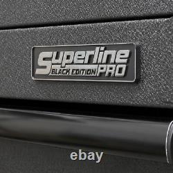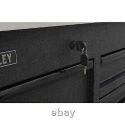 Full height rear locking mechanism, locks smooth running soft close drawers in place. Rust and solvent resistant black crinkle effect finish. Fitted with six 125mm PP wheels with black chrome effect alloys, two fixed, two swivel and two swivel with brakes. Each drawer features stylish black anodized heavy-duty drawer pulls plus pre-cut non-slip liners.