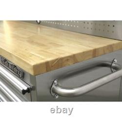 Supplied with a 38mm thick wooden worktop. 10 Drawers with a 45kg capacity each.