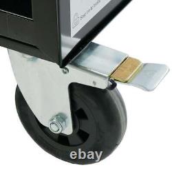 Four large polypropylene caster wheels with locking brakes provide easy mobility around the workshop (two fixed and swivel with brake). The spacious drawers include a liner to protect and prevent your tools from slipping.