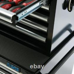 Our professional 5 drawer roll-away tool cabinet and 9 drawer tool chest is exceptional value and ideal for workshop, automotive and garage use. The incorporated special features are designed to ensure long term service with security and ease of use. Super smooth ball bearing sliders means the drawers are effortless and glide open with a reassuringly sturdy? Heavy gauge double wall steel construction with reinforced base and powder coated finish ensure a long service life.
