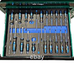 There is also a side handle for pushing the trolley. The tool set is delivered with professional-grade tools and is ideal for professional mechanics. Professional 8 drawer tools trolley.