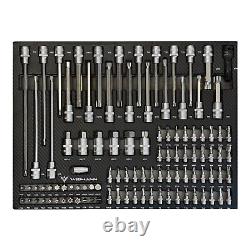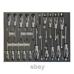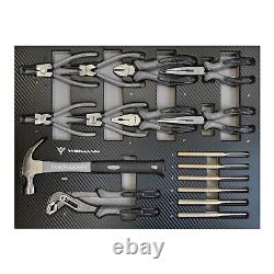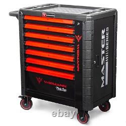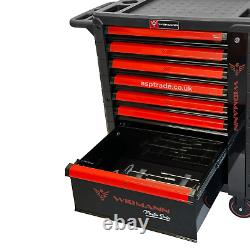 Equipped with smooth-running wheels, it can effortlessly transport your entire arsenal of tools to any corner of your job site. Inside you will discover an impressive array of heavy duty, precision crafted tools, spanning from wrenches, pliers and screwdrivers to hammers and speciality tools for every task imaginable. With designated slots and compartments for each tool, the Widmann Tool Chest keeps your gear immaculately organised, saving you precious time when searching for the right.Its secure locking system ensures that your tools stay in place during the transportation. 7 sliding drawers with ball bearings.