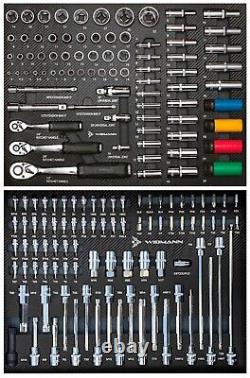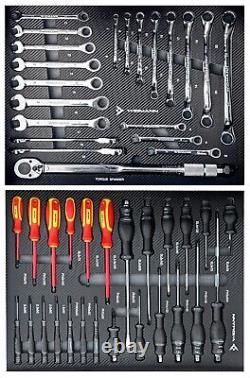 Master Line crafted from rugged high quality materials, it boasts exceptional durability, ensuring it can withstand the toughest jobs and last for years to come. Equipped with smooth-running wheels, it can effortlessly transport your entire arsenal of tools to any corner of your job site. Inside you will discover an impressive array of heavy duty, precision crafted tools, spanning from wrenches, pliers and screwdrivers to hammers and speciality tools for every task imaginable.With designated slots and compartments for each tool, the Widmann Tool Chest keeps your gear immaculately organised, saving you precious time when searching for the right. Its secure locking system ensures that your tools stay in place during the transportation.